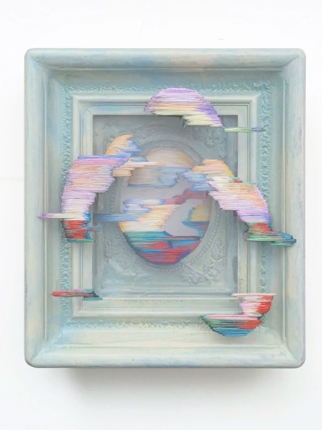 今日分享的是法国刺绣艺术家Michel的作品, 作品以刺绣为主,融合抽象美学。采用密集的水平排针、彩色绣线在网格底布上创作出具有厚度、立体感,如像素错位的超现实风景。