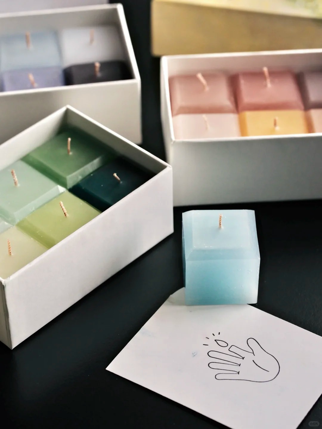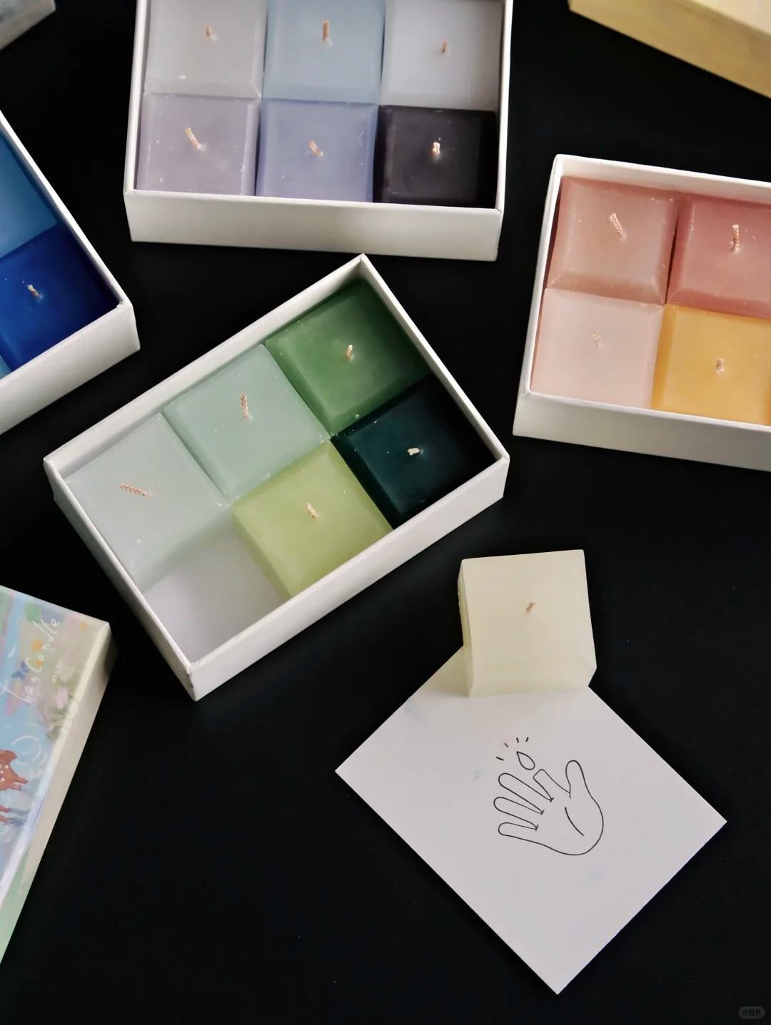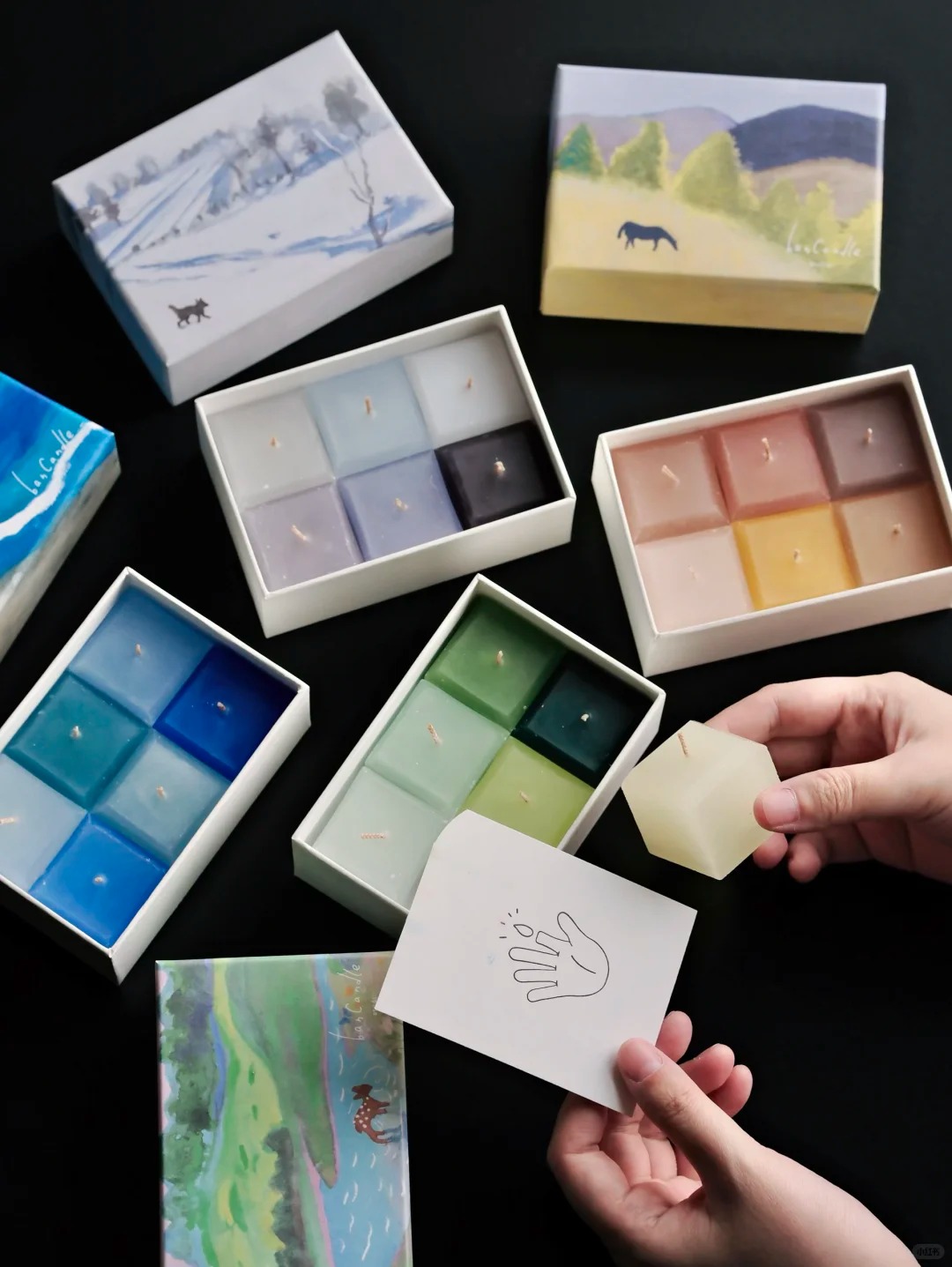 分享套王班老师和插画师合作定制的四季蜡烛, 四幅插画,四组配色, 把每一季的灵魂,都装进了小小的方块里。