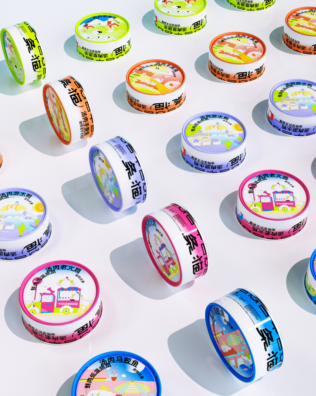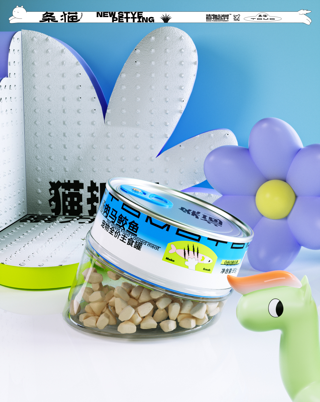 诙谐的条猫IP形象,穿着各式各样动物的卡通衣服,"鱼眼"亮点设计,打造视觉亮点,时尚立体造型与扁平结合创作,可延展性强