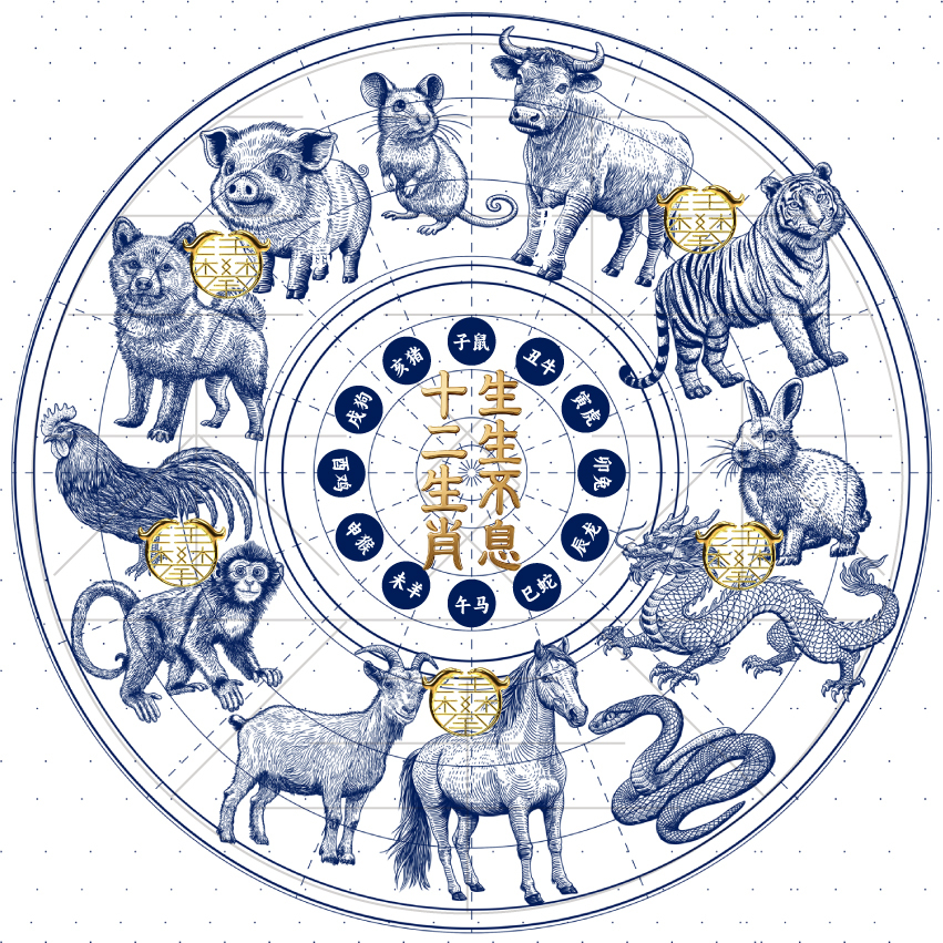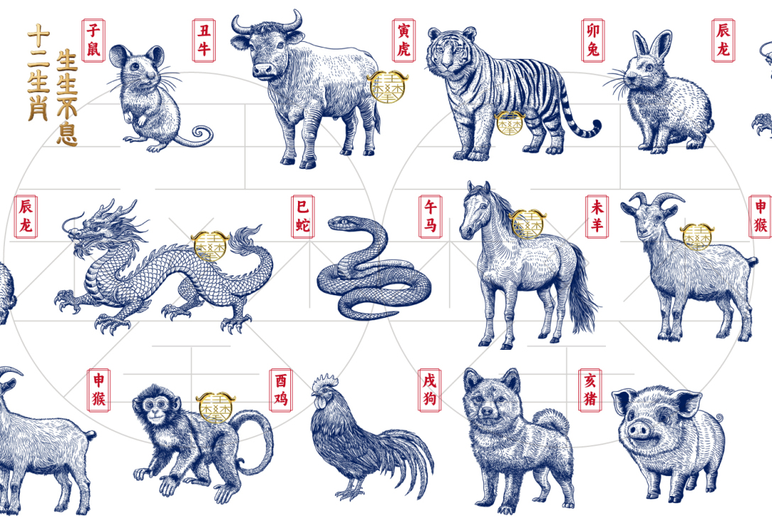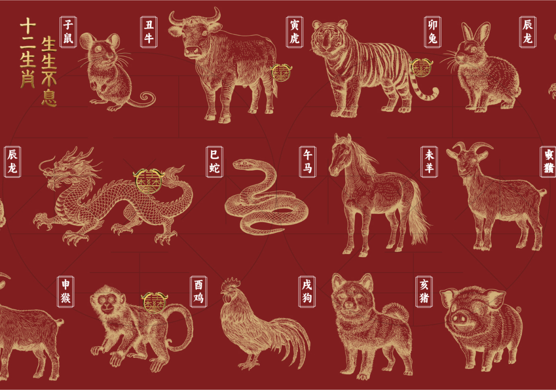 以传统版画为底,保留古朴肌理感,每一只生肖都带着灵动劲儿,没有过度花哨的修饰,却藏着最纯粹的中式浪漫。 “十二生肖,生生不息” 不只是十二只动物,更是岁月轮回的温柔,是生命传承的力量,是刻在骨子里的文化印记