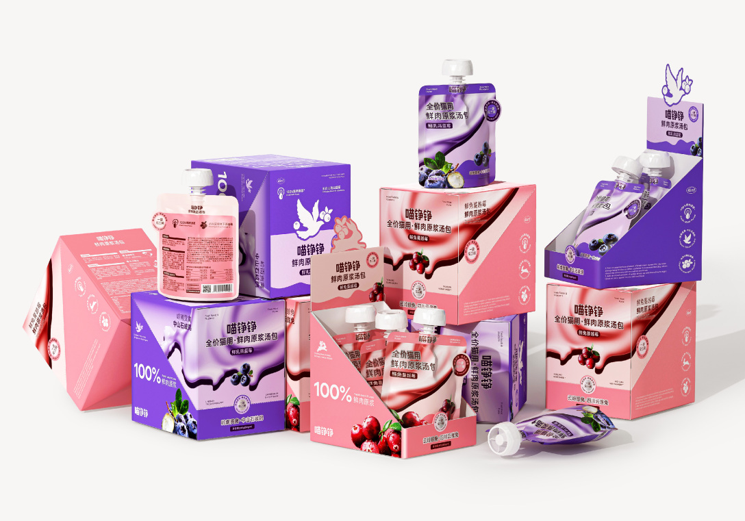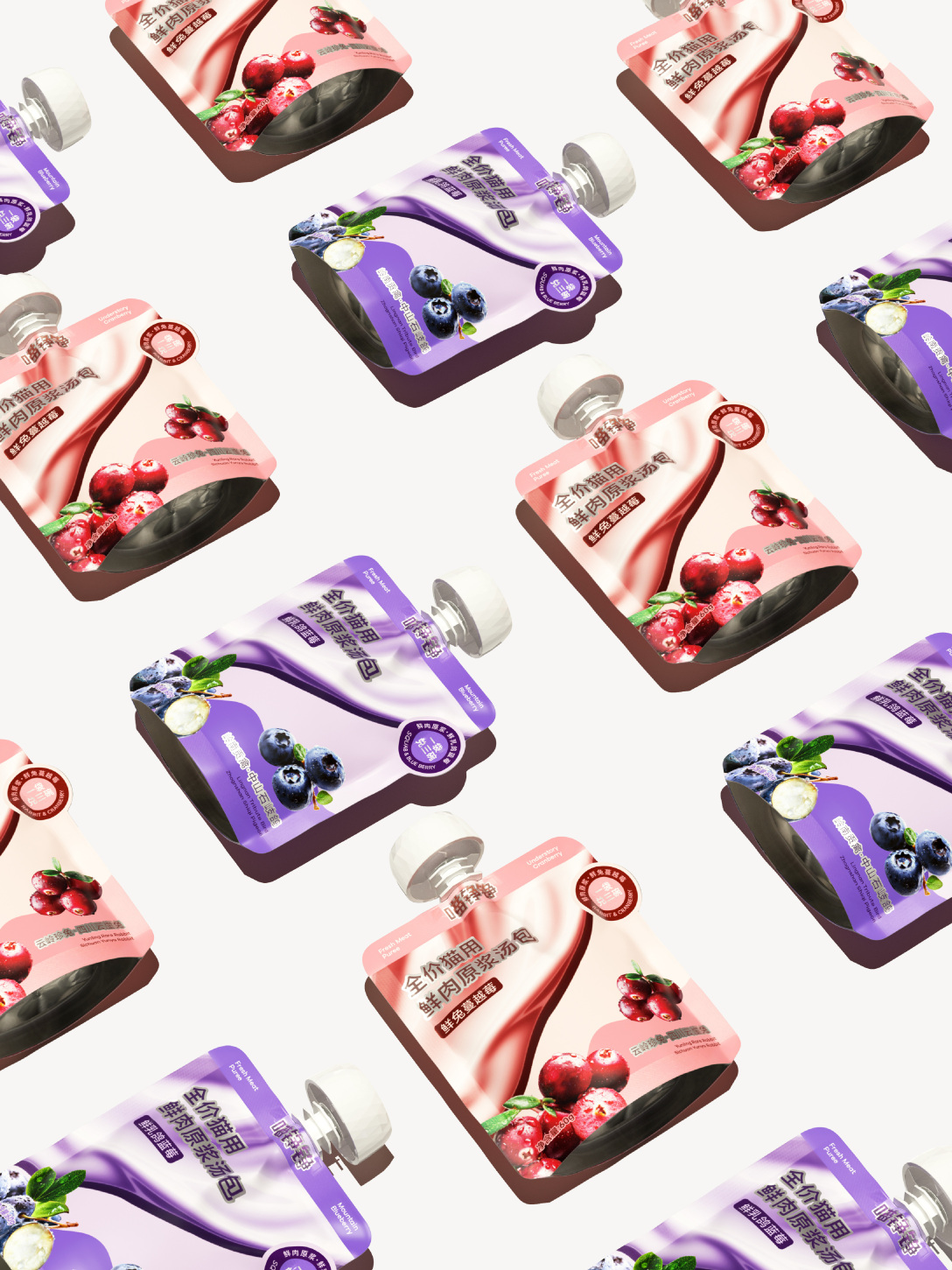 包装设计以原浆的真实质感为灵感,呈现出粘稠绵软的视觉状态,搭配果实饱满的新鲜感,营造自然鲜食的视觉体验。外盒采用PDQ纸盒结构与异形裁切设计,结合激凸与烫银工艺,整体兼具品质感与吸引力。