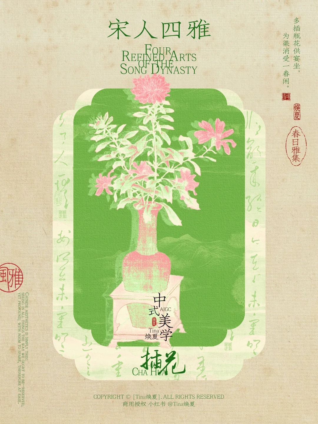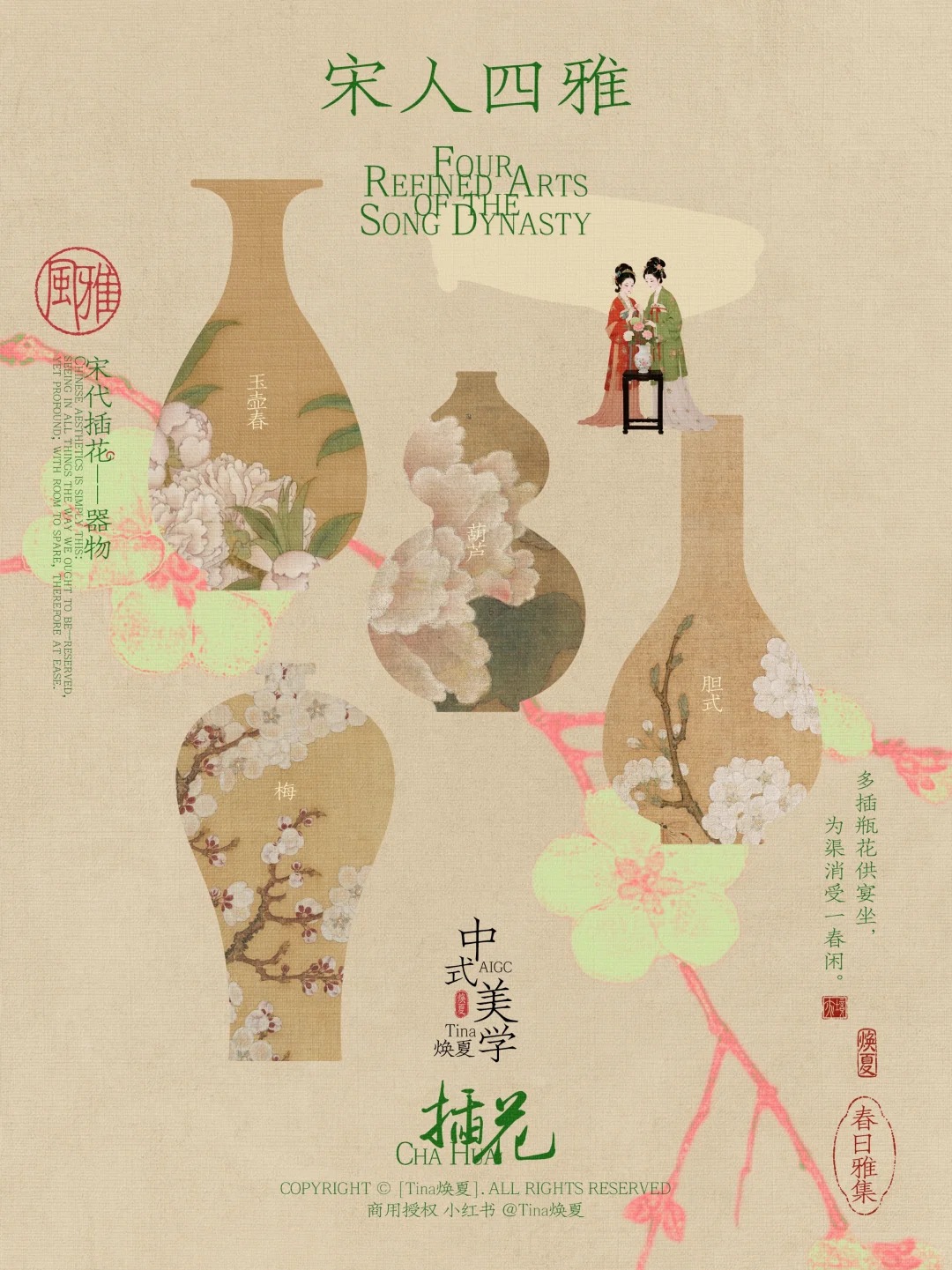 插花是宋人四大雅事之一, 不拼繁复,只重意趣。 ………………………………………………… 宋人有多爱花? 他们随四季折枝,春采桃李, 夏撷荷莲,秋插桂菊,冬供梅兰, 简简单单一两枝,便把四时风光收在瓶中。